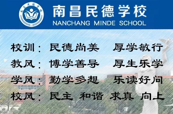 南昌民德學(xué)校遵循“民德尚美、厚學(xué)敏行”之校訓(xùn),用先進(jìn)的教育理念創(chuàng)辦理想教育為各類學(xué)生的發(fā)展提供最優(yōu)質(zhì)的服務(wù),教育教學(xué)質(zhì)量不斷提高,學(xué)生在民德實(shí)現(xiàn)健康成長與全面發(fā)展。